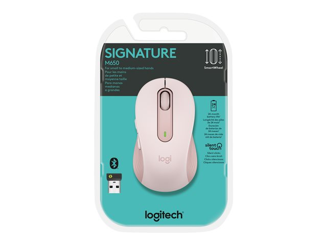 Logitech Signature M650 - Hiiri - optinen - 5 painiketta - langaton - 2.4 GHz, Bluetooth - Logitech Logi Bolt USB-vastaanotin - ruusu 910-006254