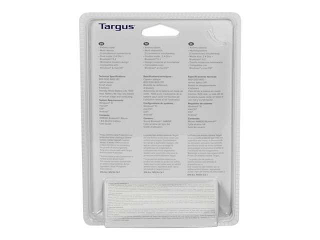 Targus - Hiiri - antimikrobinen - oikea- ja vasenkätiselle - langaton - Bluetooth 5.0 - musta