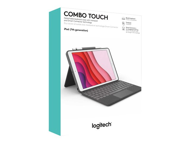 Logitech Combo Touch - Näppäimistö- ja kalvokotelo - sekä kosketuslevy - taustavalaistu - Apple Smart connector - AZERTY - ranskalainen - grafiitti malleihin Apple 10.2-inch iPad (7. sukupolvi, 8. sukupolvi, 9. sukupolvi)