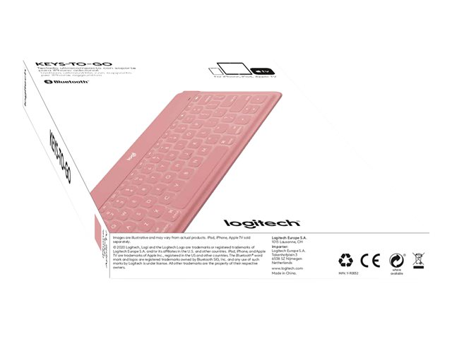 Logitech Keys-To-Go - Näppäimistö - langaton - Bluetooth - QWERTY - pohjoismainen - punastuspinkki malleihin Apple iPad/iPhone/TV 920-010051