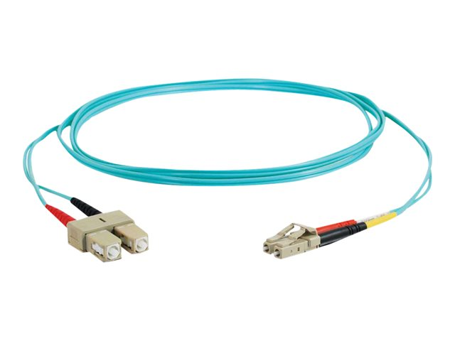 C2G LC-SC 10Gb 50/125 OM3 Duplex Multimode PVC Fiber Optic Cable (LSZH) - Verkkokaapeli - SC (monitila) (uros) to monimuoto LC (uros) - 2 m - kuituoptinen - kaksipuolinen (duplex) - 50 / 125 micron - OM3 - ei sisällä halogeenia - sinivihreä