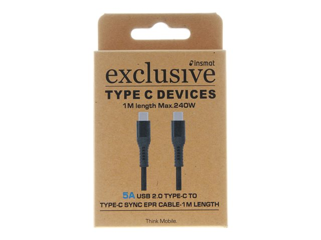 Insmat - USB-kaapeli - 24 pin USB-C (uros) to 24 pin USB-C (uros) - USB 2.0 - 48 V - 5 A - 1 m - USB-virransyöttö (240 W), up to 480 Mbps - musta