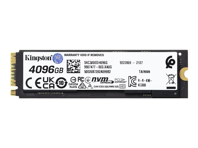 Kingston KC3000 - SSD - 4096 GB - sisäinen - M.2 2280 - PCIe 4.0 (NVMe) malleihin Intel Next Unit of Computing 12 Pro Kit - NUC12WSKi5 SKC3000D/4096G
