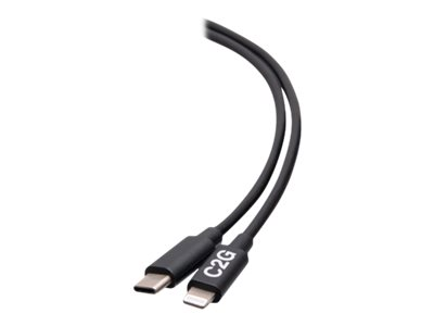 C2G 3ft (0.9m) USB-C Male to Lightning Male Sync and Charging Cable - Black - Salamakaapeli - 24 pin USB-C uros to Lightning uros - 91 cm - musta - USB-virransyöttö (20 W), up to 480 Mbps