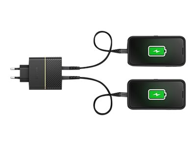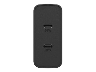 OtterBox Wall Charger - Verkkosovitin - 50 watti(a) - 3 A - PD 3.0 - 2 lähtöliittimet (24 pin USB-C) - musta hohto