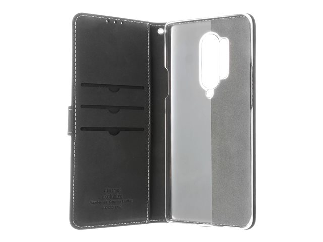 Insmat Exclusive Flip Case - Läppäkansi matkapuhelimelle - aito nahka, paperi, pahvi, polykarbonaatti, alumiinifolio - musta malleihin OnePlus 8 Pro