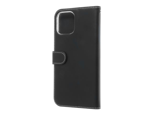 Insmat Exclusive Flip Case - Läppäkansi matkapuhelimelle - paperi, pahvi, nahka, polykarbonaatti, puuvilla, alumiinifolio - musta malleihin Apple iPhone 12 Pro Max