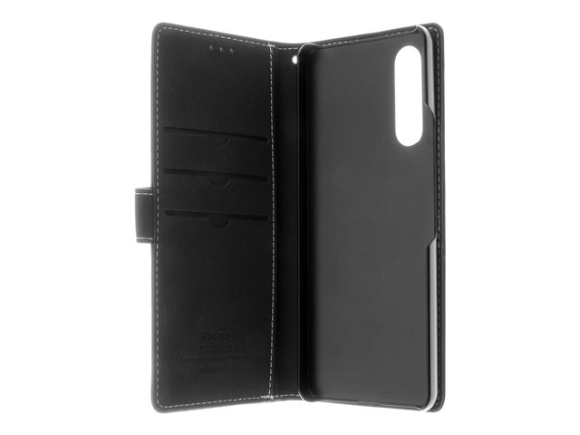 Insmat Exclusive - Läppäkansi matkapuhelimelle - nahka, kartonki + paperi + alumiinifolio - musta malleihin Sony XPERIA 10 V 650-3173