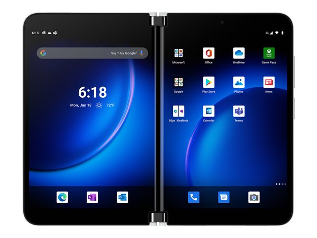 Microsoft Surface Duo 2 - 5G älypuhelin - Kaksois-SIM - RAM 8 Gt / sisäinen muisti 128 Gt - OLED-näyttö - 8.3" 2688 x 1892 pikseliä (90 Hz) - 3 takakameraa 12 MP, 12 MP, 16 MP - front camera 12 MP - Telekom - Jäätikkö