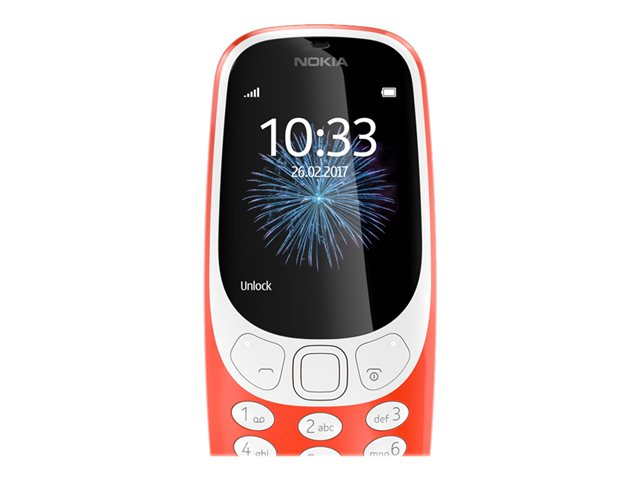 Nokia 3310 Dual SIM - Erikoispuhelin - Kaksois-SIM / sisäinen muisti 16 Mt - microSD slot - 320 x 240 pikseliä - rear camera 2 MP - lämmin punainen (kiiltävä) A00028092