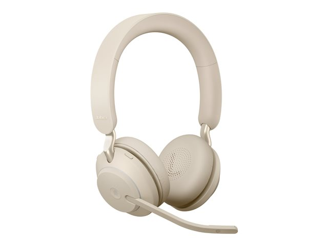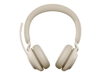 Jabra Evolve2 65 MS Stereo - Kuulokkeet + mikrofoni - korvien päällä - Bluetooth - langaton - USB-C - melua vaimentava - beige - sertifioitu Microsoft Teamsille