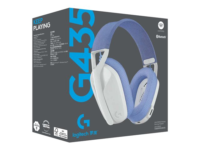 Logitech Lightspeed G435 - Kuulokkeet + mikrofoni - täysikokoinen - Bluetooth / 2,4 GHz radiotaajuus - langaton - valkoinen - Discord-sertifioitu