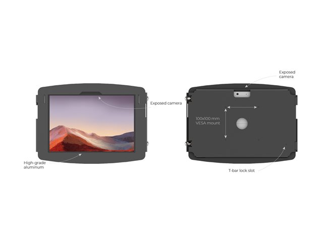 Compulocks Surface Pro 8-10 Space Enclosure Tilting Stand 8" Black - Asennuspakkaus (kotelo, pylvästeline) malleihin tabletti - lukittava - korkealaatuinen alumiini - musta -näytön koko: 13" - pintaan asennettava malleihin Microsoft Surface Pro 8, Pro 9