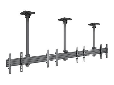 Multibrackets M Pro Series - Asennuskomponentti (kisko, 8 fixed arms, 3 kattolevyä, 3 pylvästä) - yhdelle puolelle malleihin 4 litteää paneelia - alumiini, teräs - musta -näytön koko: 32"-50" -kiinnitysliitäntä: enintään 300 x 300 mm - kattoon asennettava