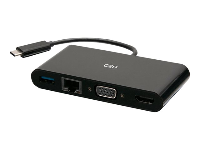 C2G USB C to HDMI, VGA, USB A, Ethernet Adapter - 4K 30Hz - Black - Telakointiasema - USB-C / Thunderbolt 3 - HDMI, VGA - 1GbE