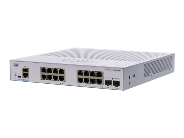 Cisco Business 350 Series CBS350-16T-E-2G - Kytkin - L3 - Hallinnoitu - 16 x 10/100/1000 + 2 x Gigabit SFP - telineeseen asennettava