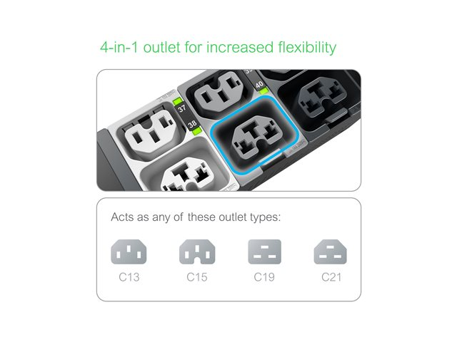 | Tehon lähtöliittimien yksityiskohdat | 20 x IEC 60320 C13/C15/C19/C21 -virtaliitin 20 x IEC 60320 C13/C15 -virtaliitin |